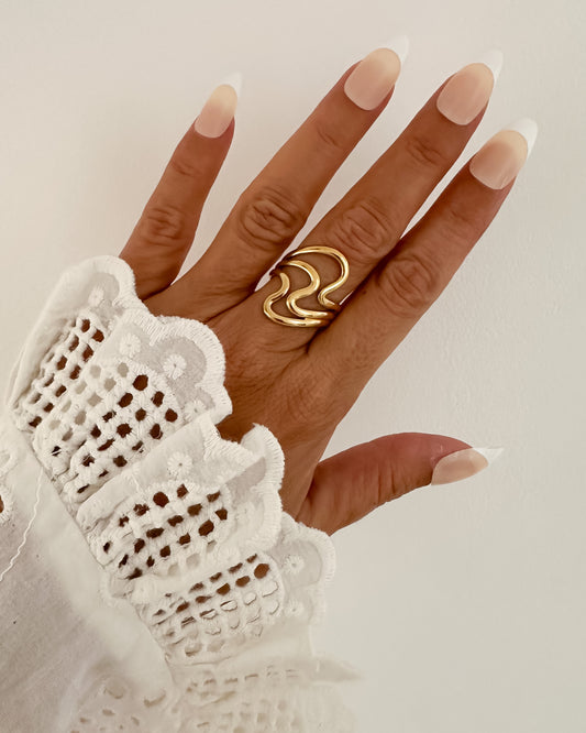 Anillo ajustable bandas onduladas en acero baño oro 18K Waves