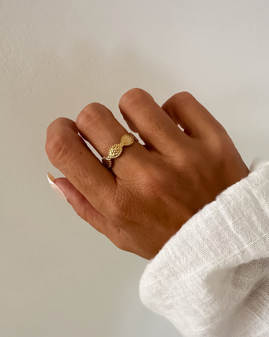 Anillo ajustable diseño chapitas textura en acero baño oro 18K Brownie