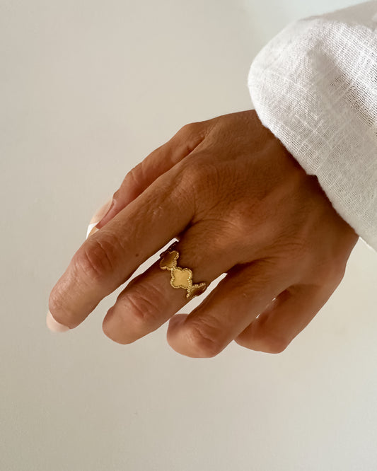 Anillo ajustable diseño tréboles en acero baño oro 18K Clover