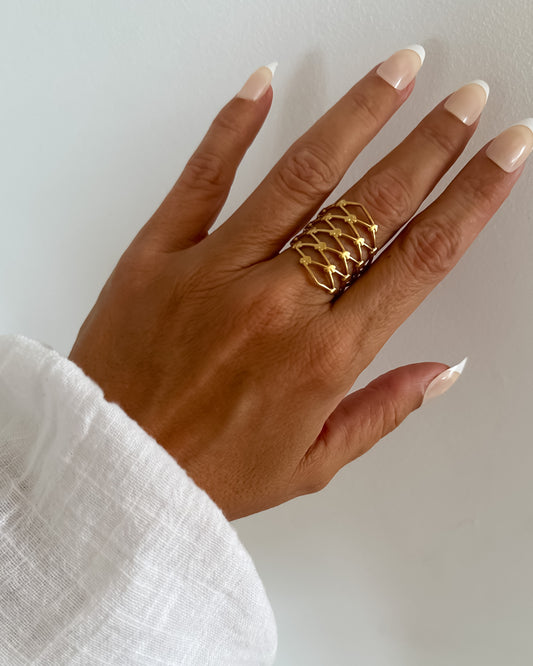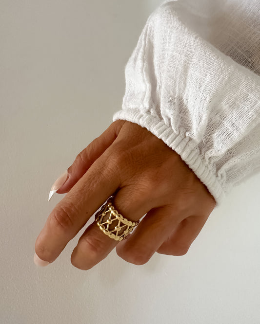 Anillo ajustable diseño enrejado en acero baño oro 18K Red