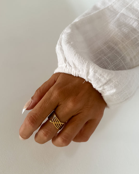 Anillo ajustable bandas cruzadas en acero baño oro 18k Crossy Gold