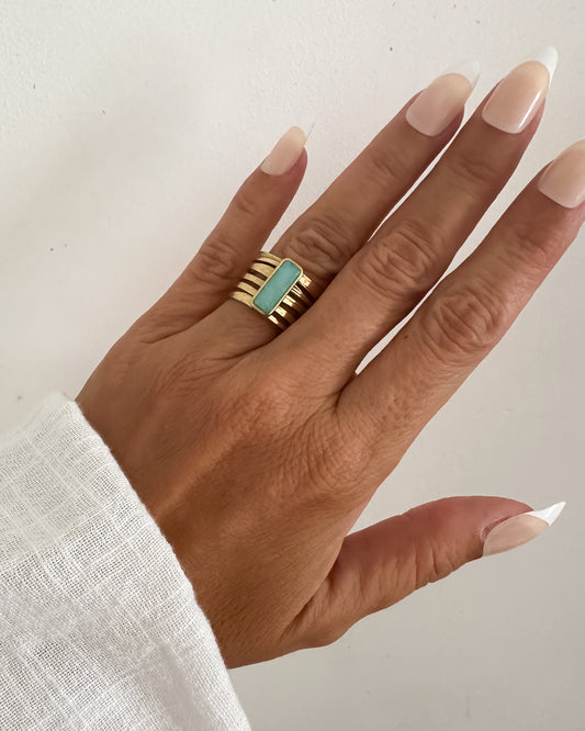 Anillo ajustable piedra rurquesa rectangular en acero baño oro 18K Bella Turquesa