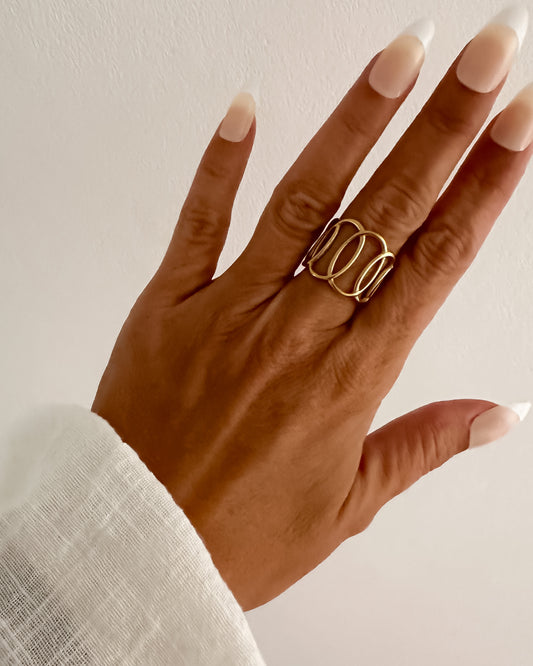 Anillo ajustable círculos entrelazados en acero baño oro 18K Barbados