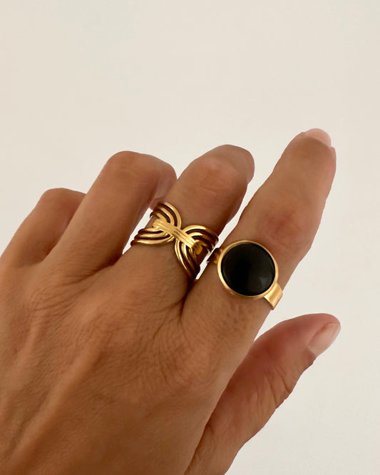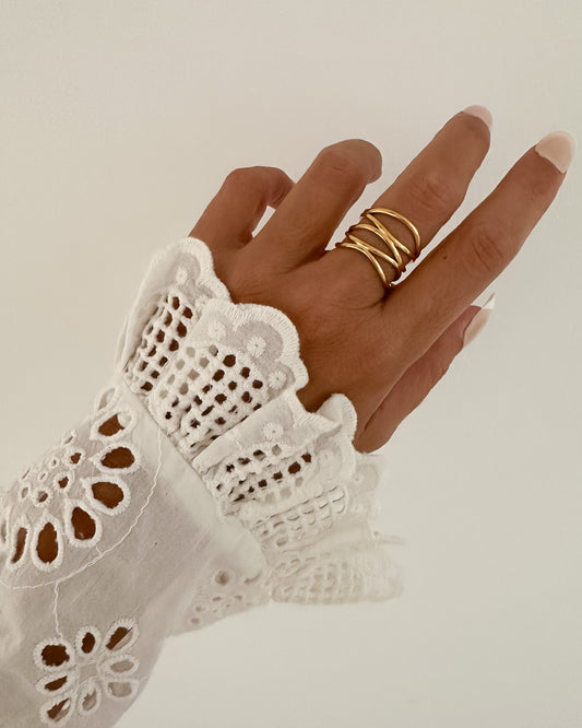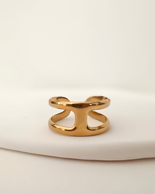 Anillo diseño ondas simétrico en acero inoxidable baño oro 18K Lace Gold