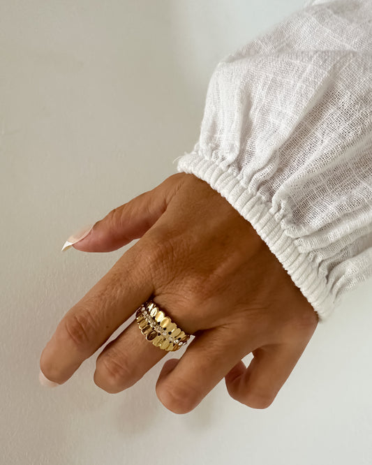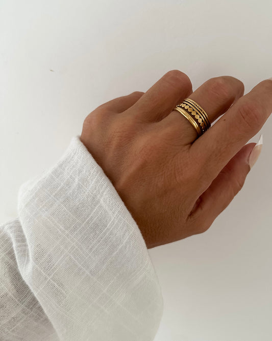 Anillo bandas cruzadas detalle puntos en acero baño oro 18K Fidji