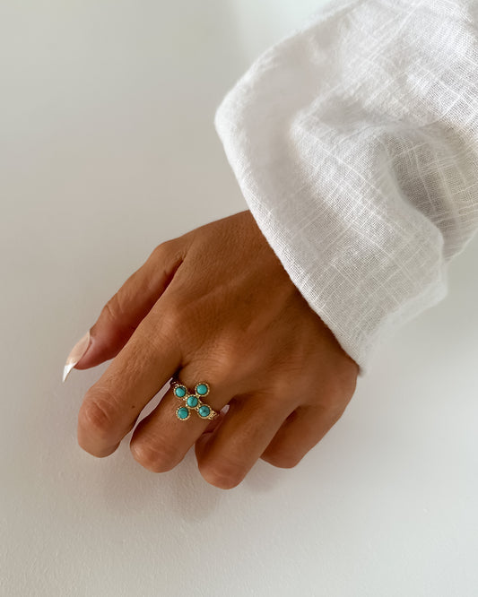 Anillo cruz piedras turquesa en acero baño oro 18K Cruz Turquesa