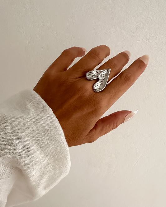 Anillo corazón textura ajustable baño rodio Hansel Silver