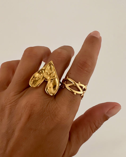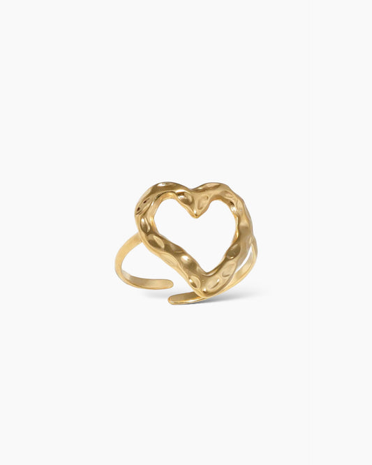 Anillo corazón textura ajustable en acero baño oro 18K Santana