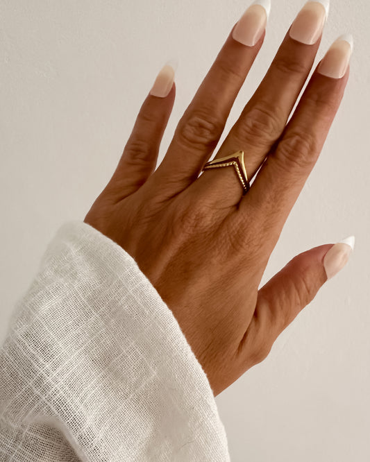 Anillo fino doble banda acabado en pico en acero baño oro 18K Kira