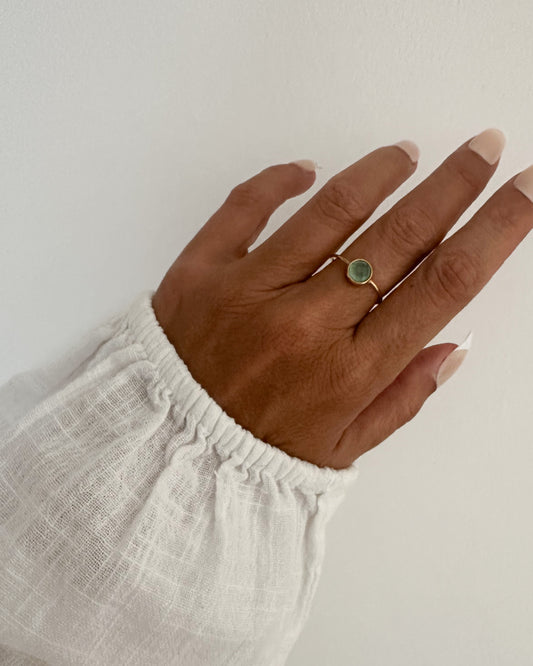 Anillo fino ajustable cristal verde agua acero baño oro 18K Vir