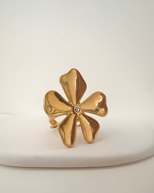 Anillo Flor ajustable en acero inoxidable con baño de oro 18K Lirio Gold