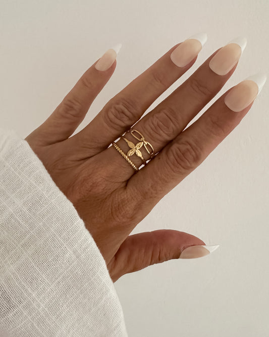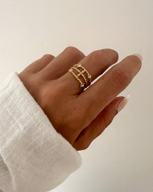 Anillo fino triple ajustable texturas en acero baño oro 18K Lis