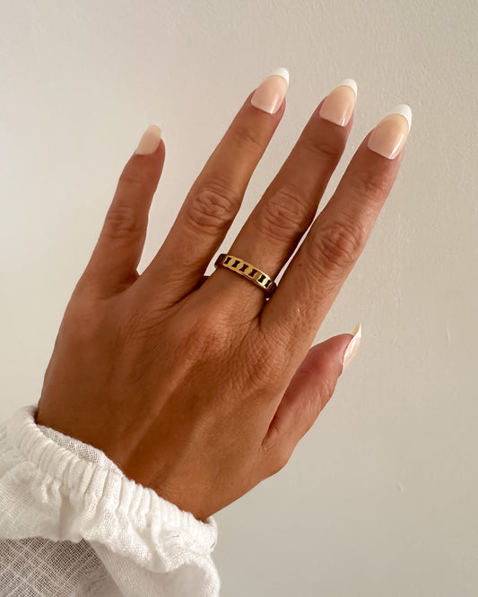 Anillo fino en acero inoxidable baño oro 18K Habana