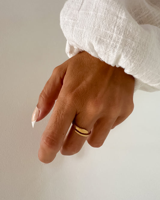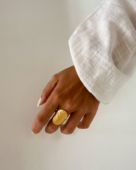 Anillo grande textura martilleada en acero baño oro 18K Martel