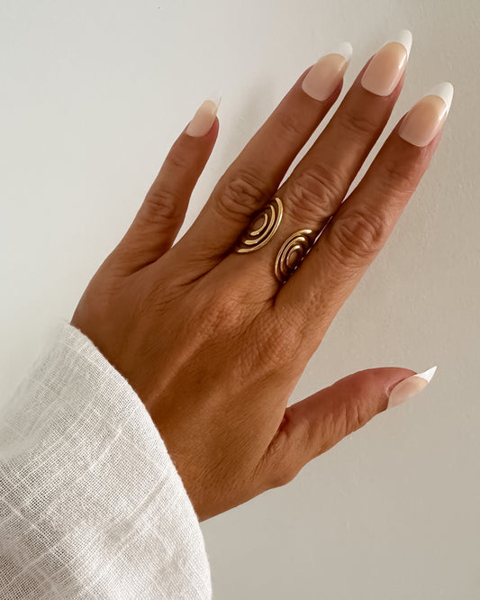 Anillo maxi diseño espiral textura en acero inoxidable baño oro 18K Spiral