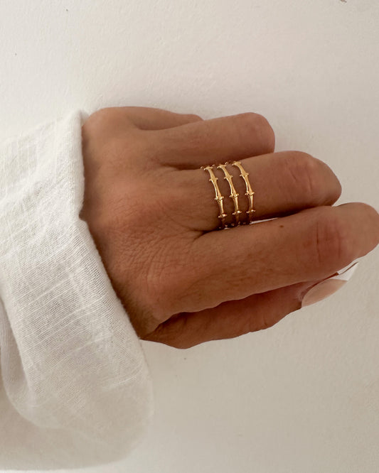 Anillo fino triple ajustable en acero acabado oro 18K Spina