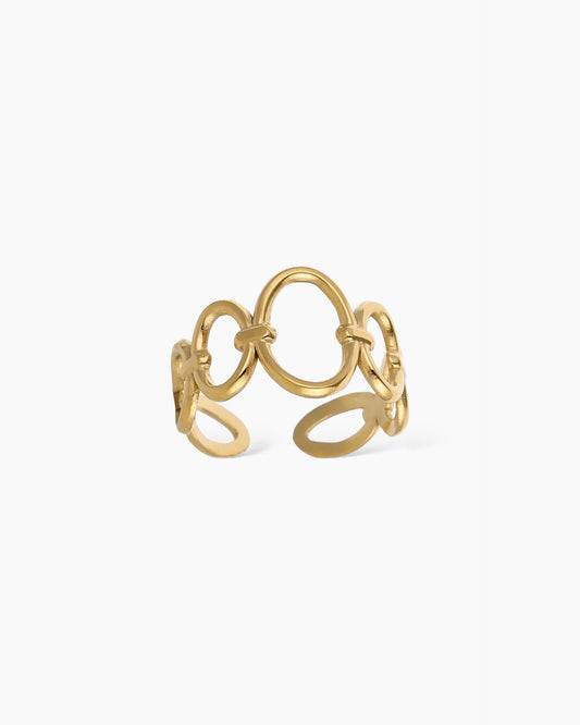 Anillo fino óvalos ajustable en acero inoxidable baño oro 18 K Mavi Gold