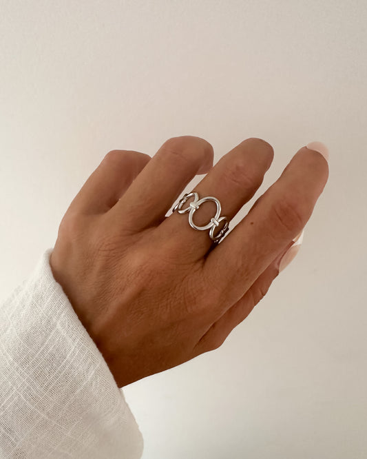 Anillo fino óvalos ajustable en acero inoxidable acabado rodio Mavi Silver