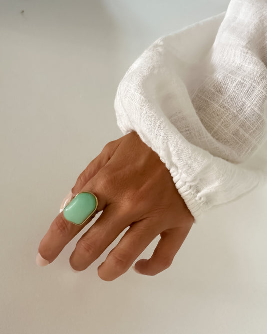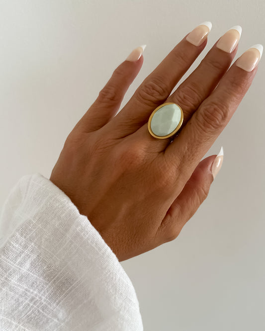 Anillo piedra grande irregular acero baño oro 18K Galarina Menta