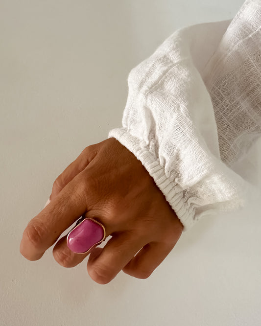 Anillo piedra grande irregular acero baño oro 18K Galarina Rosa