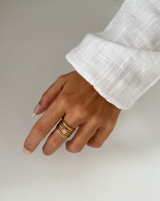 Anillo piedra rosa pequeña acero baño oro 18 K Sandrine