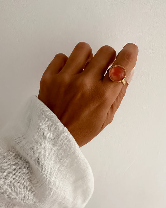 Anillo piedra redonda semitransparente en acero baño oro 18K Basile Rossé