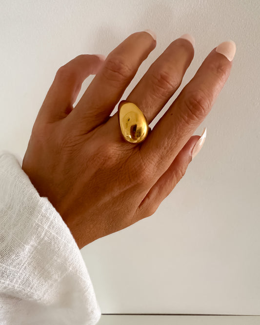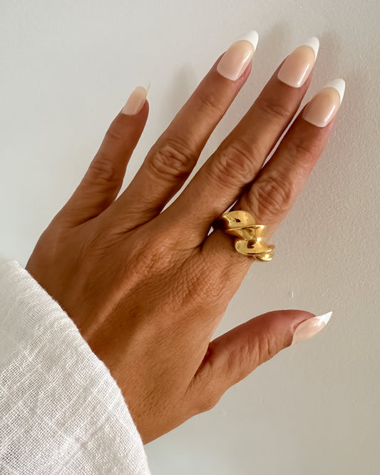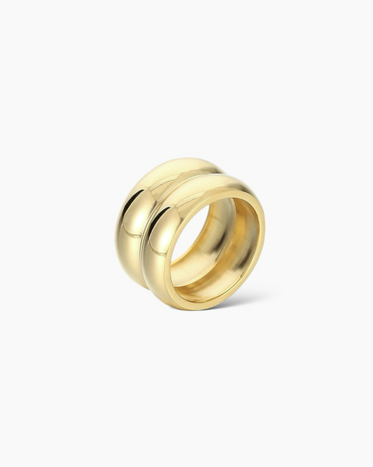 Anillo grande diseño enlazado en acero baño oro 18K Aquiles