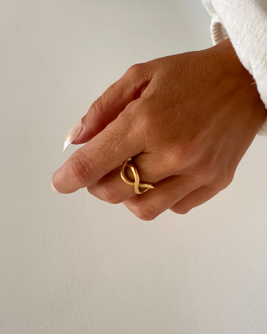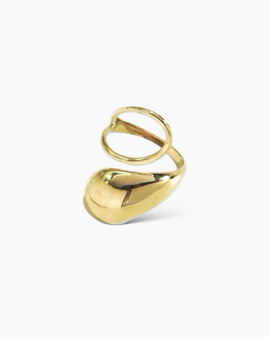 Anillo grueso envolvente con hueco en acero baño oro 18K