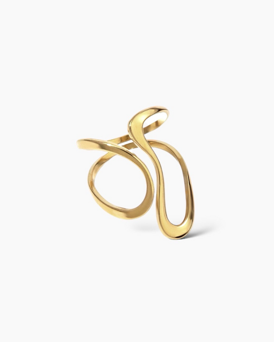 Anillo grueso espiral en acero inoxidable con baño de oro 18K Riga