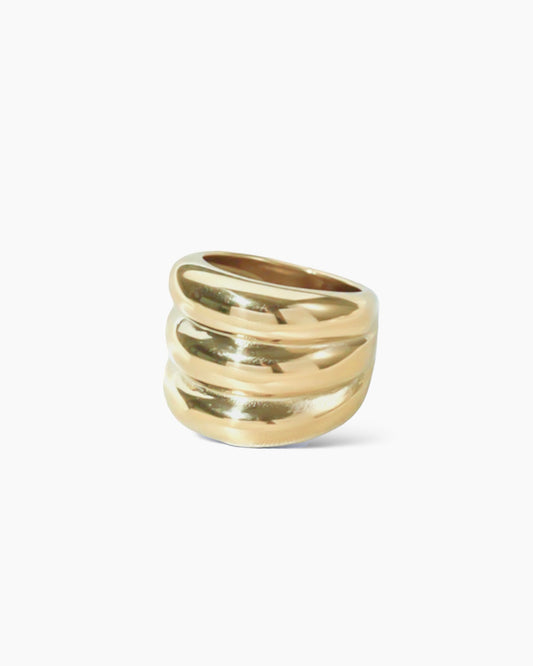 Anillo grueso triple en acero inoxidable con baño de oro 18K Eos