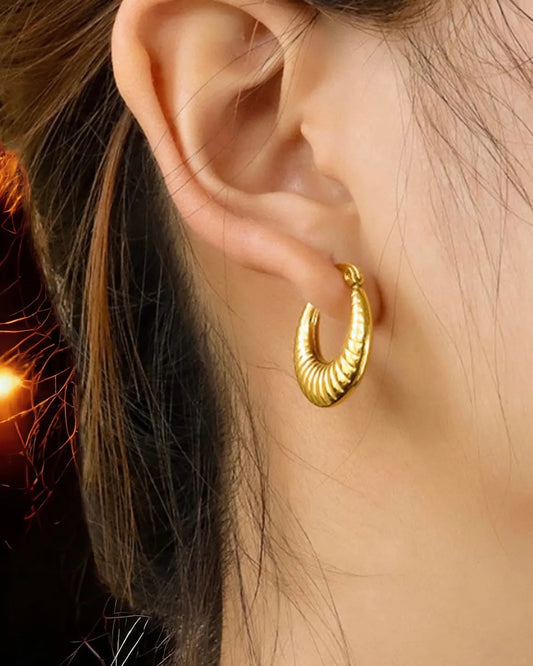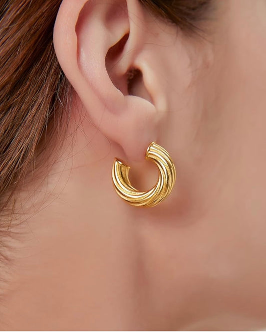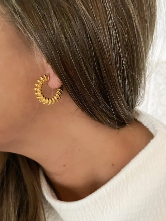 Aros medianos cierre presión rizados en acero baño oro 18K Buttercream