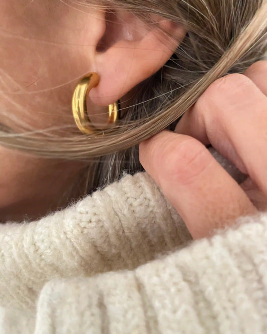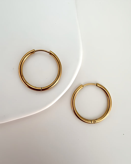 Aros 20mm básicos gruesos en acero inoxidable baño oro 18K