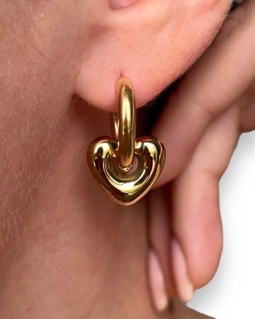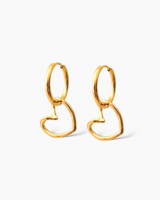 Aros medianos con charm corazón en acero baño oro 18K Dora Corazón