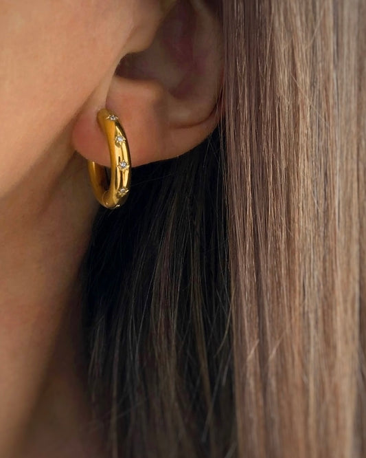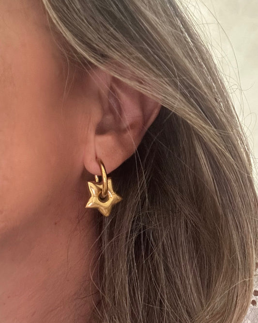 Aros medianos con charm estrella en acero inoxidable con baño oro 18K Dora Estrella
