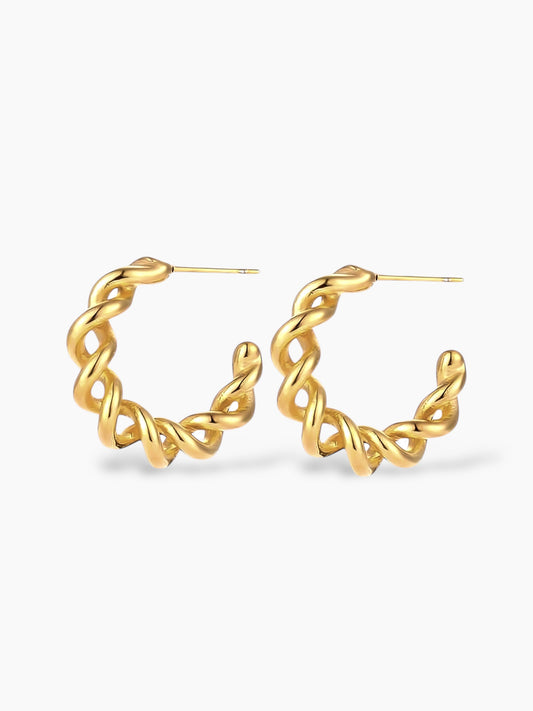 Pendientes de aro medianos diseño rizo en acero baño oro 18K DNA