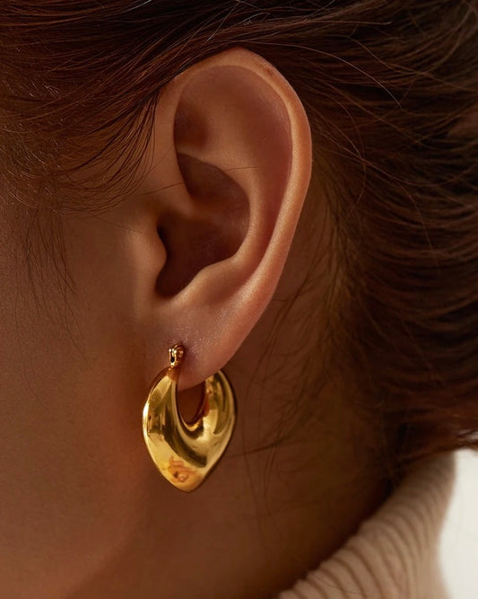 Pendientes de aro gruesos acabados en punta en acero inoxidable baño oro 18K Aros Bucarest