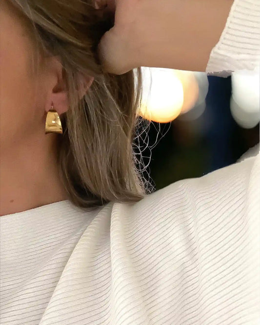 Aros medianos diseño aplanado en acero baño oro 18K Cairo