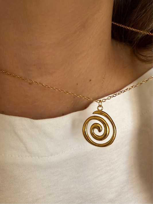 Collar cadena fina con colgante forma espiral en acero baño oro 18K Tornado
