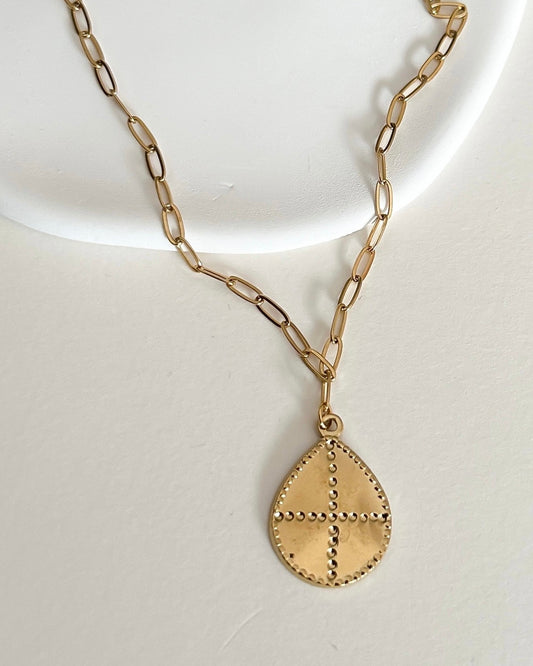 Collar cadena eslabones pequeños con colgante grande lágrima en acero baño oro 18K Esparta