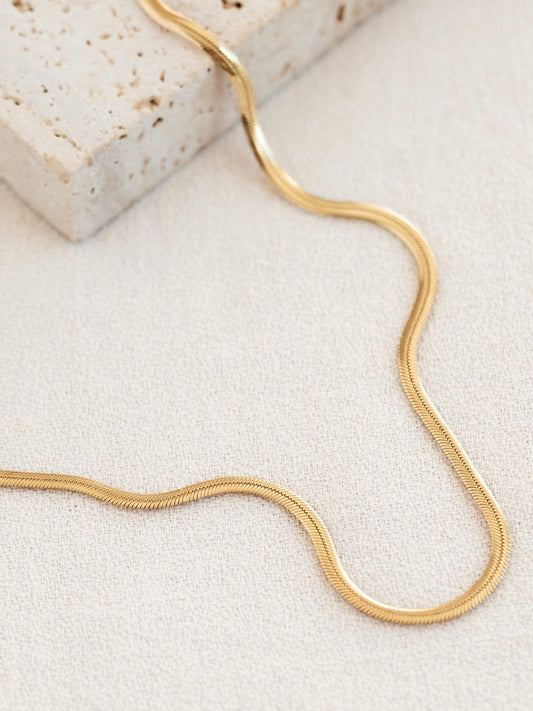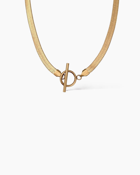 Collar corto de cadena plana con cierre delantero en acero baño oro 18k Snake