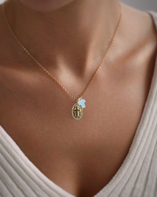 Collar colgante medallita textura motivo Cruz en acero acabado ro mate Medalla Cruz