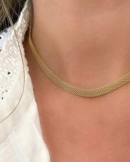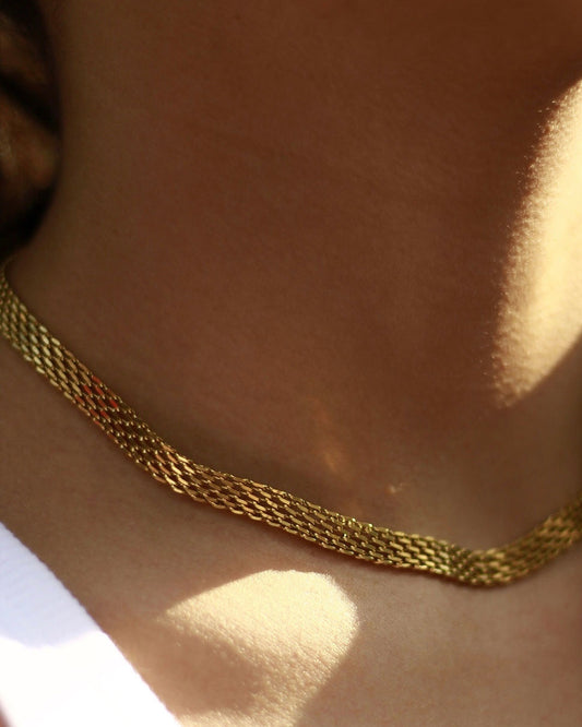 Collar corto cadena tejida en acero baño oro 18K Nasa