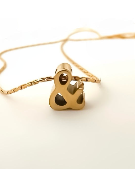 Collar corto cadena fina con colgante minimalista con forma de ampersand en acero baño oro 18K “&”