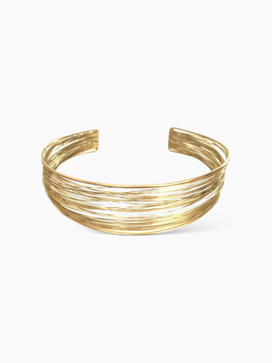 Gargantilla rígida estilo choker diseño hilos en acero baño oro 18K Elegance