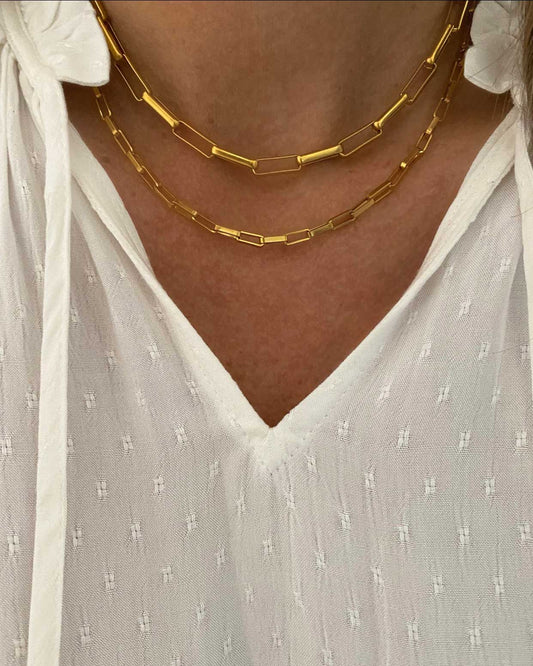 Collar cadena de eslabones cuadrados grandes en acero baño oro 18K Squared