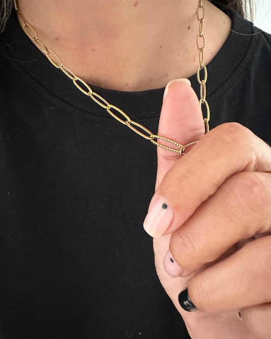 Cadena eslabones grandes estilo clip con textura en acero inoxidable Textura