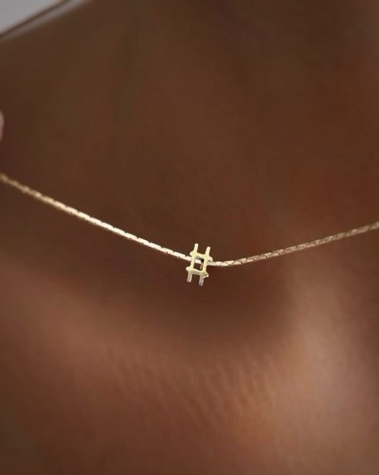 Collar corto cadena fina con colgante minimalista con forma de almohadilla en acero baño oro 18K “#”