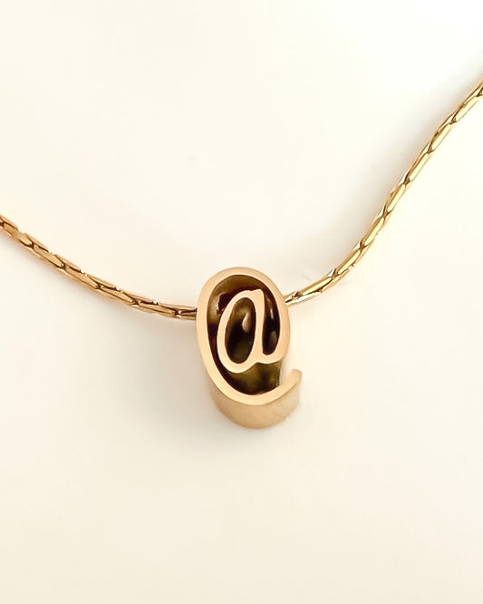Collar corto cadena fina con colgante minimalista con forma de almohadilla en acero baño oro 18K “@“