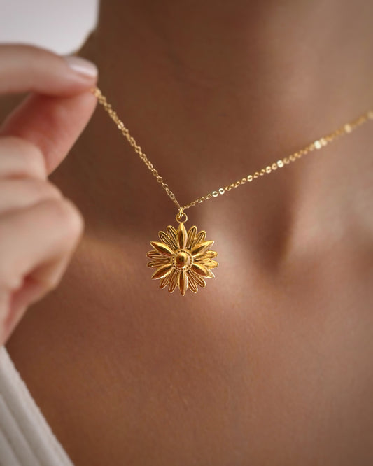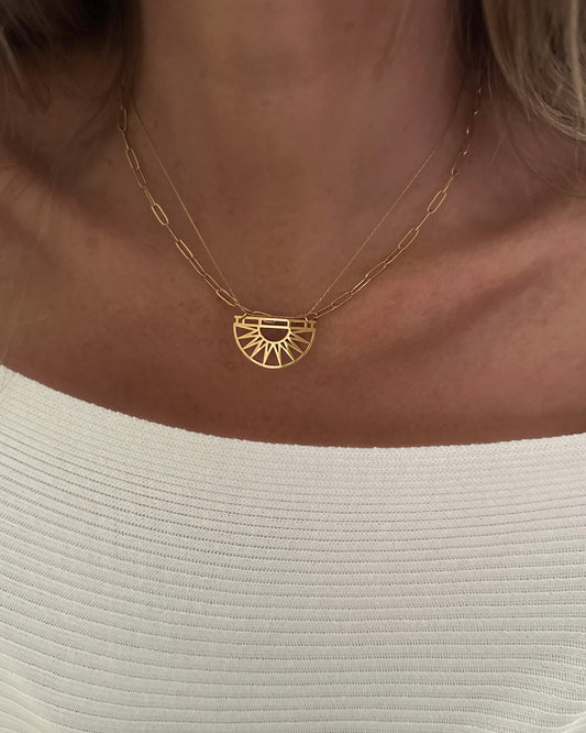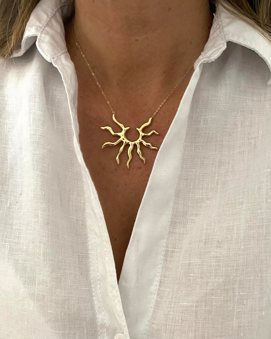 Colgante grande con diseño de rayos de sol en acero baño oro 18K Ra