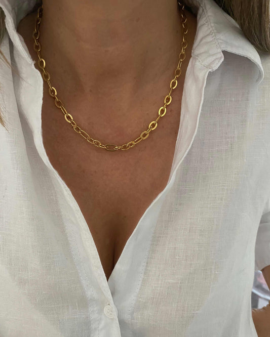 Collar de cadena diseño eslabones en acero baño oro 18K Nest
